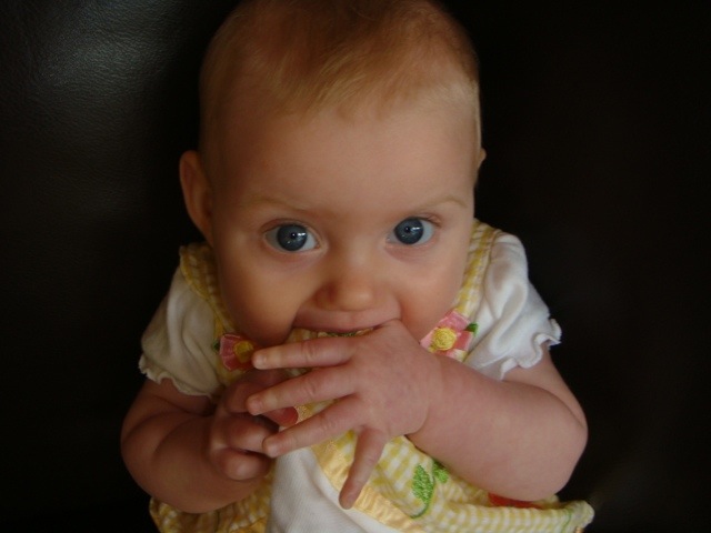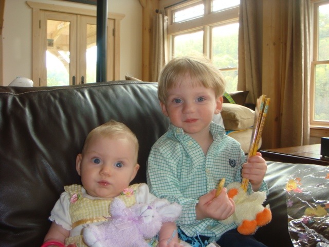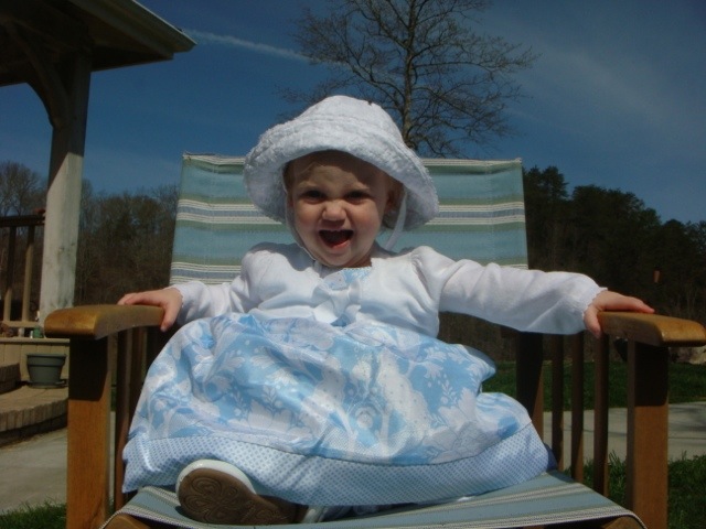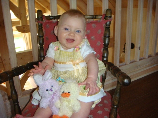 Abigail is sitting in my rocking chair from when I was a baby. My daddy gave it back to me a few years ago after refinishing it.