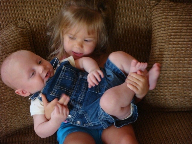 Newest cousin Synclair with her brother Saxton, and her mommy Amanda.10/2012