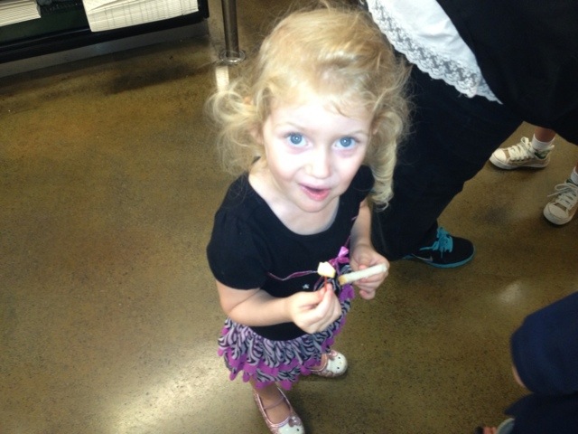 Jackson placed the butterfly on Isabela and it never offered to fly away. She wasn’t too sure about it but didn’t cry.