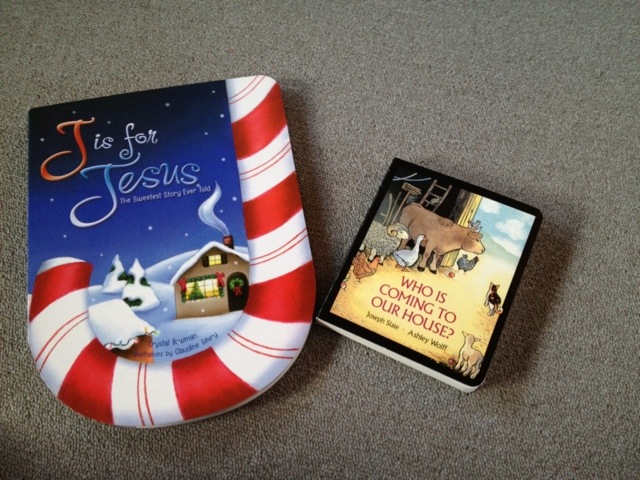 We also added these two titles. I loved the title “J is for Jesus,” by Crystal Bowman. This is a great story about the candy cane tradition and it’s meaning and reminds us all that the candy cane represents Jesus’ birth. The kids and I also enjoyed pointing out that each of us have a letter J in our names… Jackson, James Steven, Abigail Julienne, Isabela Jolie, and Julie.