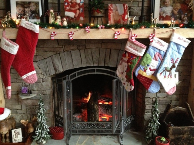 Another cozy fire and “the stockings hung by the chimney with care in hopes that St. Nick would soon be there!”