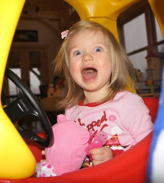 “Me, Ride” Jackon always willing to make her happy, especially now that she is starting to communicate what she wants, they are thrilled they have “taught her how to talk!”