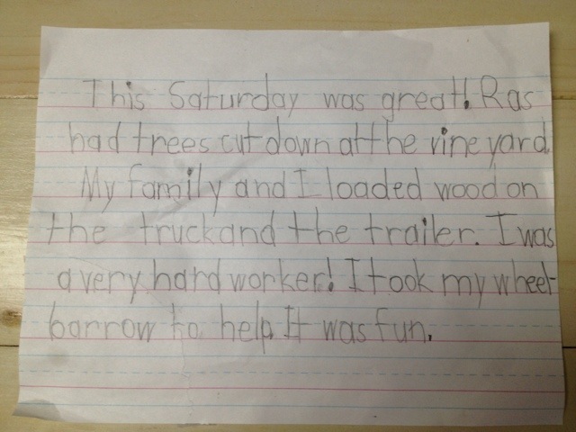 My closet somehow became a parking garage for balance bikes, bikes with training wheels, tricycles, tractors, wagons, and everything else they push or ride. Much to my dismay, I couldn’t enter due to the mess! Since we have established a “parking spot” for each of those mentioned toys, my frustration led me to follow the lead to one of our literature favorites, “The Poky Little Puppy.” I posted the note on the right outside our closet door. I loved listening to Jackson read this to Abigail and explain it to her.