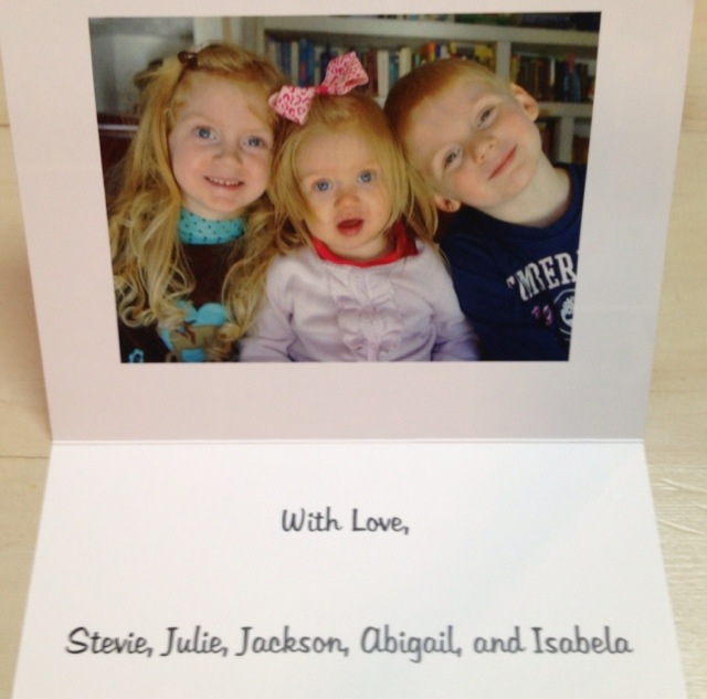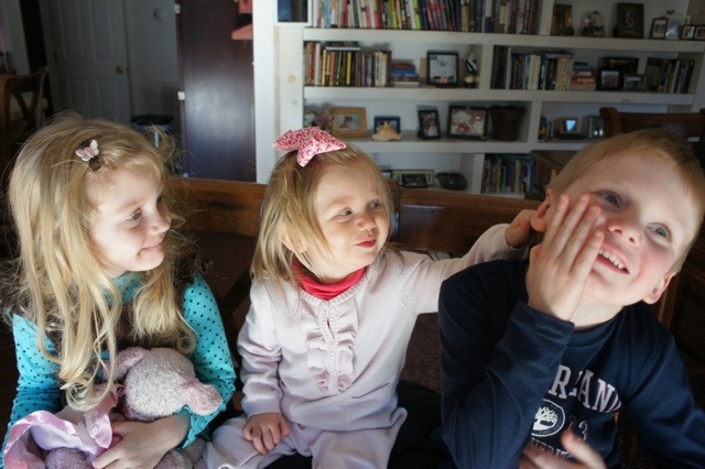 Both Abigail and Jackson are so excited to be “big” brothers and sisters to Isabela. She is such a fun experience for them both. Abigail is super sweet about her affection toward her baby sissy. In the dark of an extremely loud and windy night, while she and Jackson were sleeping in our bed, she whispered to me how cute Isabela was, how she liked that Isabela followed and played with her, and then she closed by thanking me to bring her to live with us! How wonderful of a comment for a four year to make!
