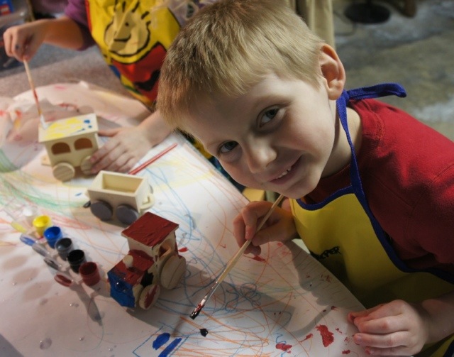 Painted a wooden train craft(a gift from Aunt Teresa)