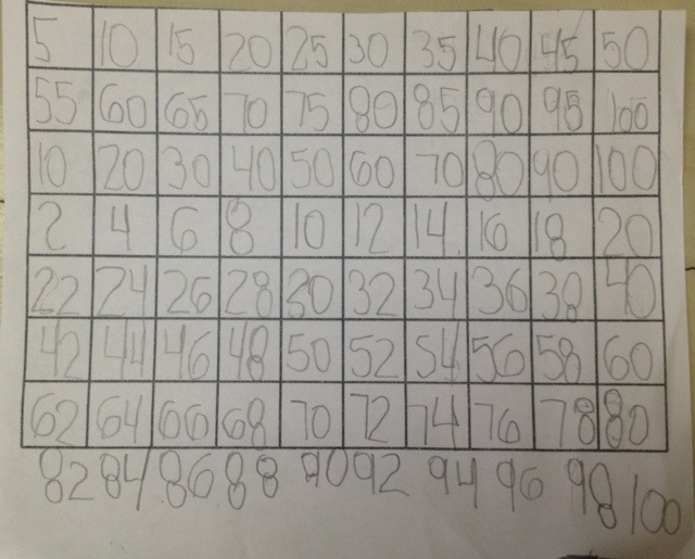 As a review I had him to write by 10’s, 5’s, and 2’s to 100