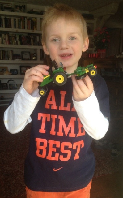 Jackson’s favorite, a new set of blocks which turned into a John Deere tractor set. We had it completed in two days! He loves it!