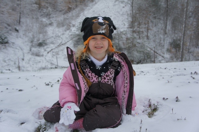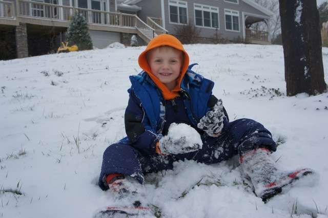 Another chance for Isabela to be intrigued by the sound of snow crunching under her boots and to feel the cold stuff on her nose. Also another opportunity to wear Jackson’s first coat.