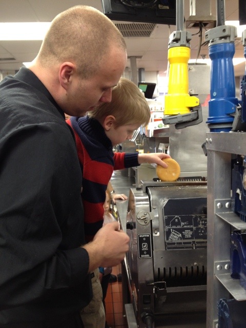 Later in the morning we were able to take a behind the scenes tour of one of the largest McDonald’s in the US. The children were given the opportunity to take orders from the drive thru as well as the counter, push buttons, and make fruit smoothies (Abigail’s favorite). This is Jackson putting a bun in the warmer with help from our guide.