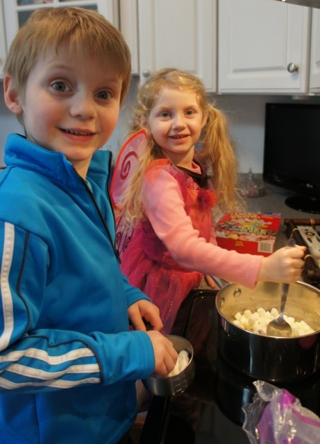 We made a quick treat to celebrate St. Patrick’s Day using Lucky Charms and marshmallows.