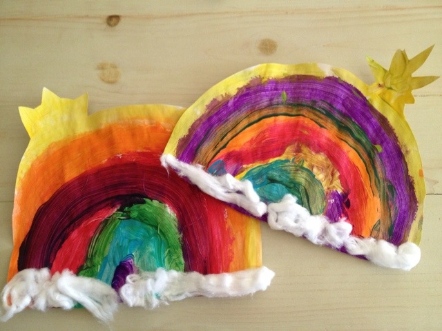 Painting, since we don’t do it that often, is a fun treat. We made our own rainbows for the leprechaun to leave a pot of gold under.