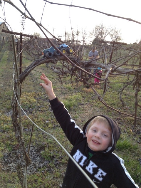 Jackson figured out that driving his trucks up the vines is a lot more fun than collecting the vine cuttings.