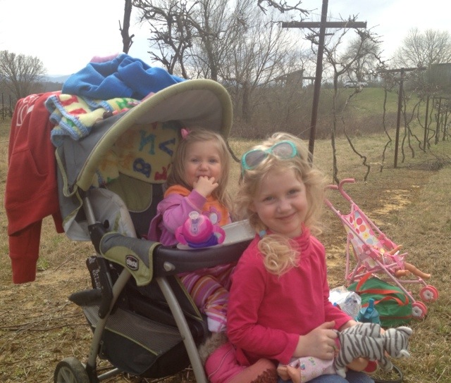 These COLD spring days are keeping us inside and on most days out of the vineyard. Plenty of time for dress up and pretend play.