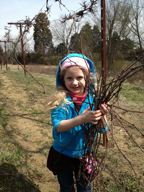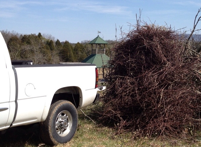 Because of the lack of cooperation from the weather, this pruning season has mostly been completed by Daddy…on his lunch breaks, before and after work, and LONG weekend days!