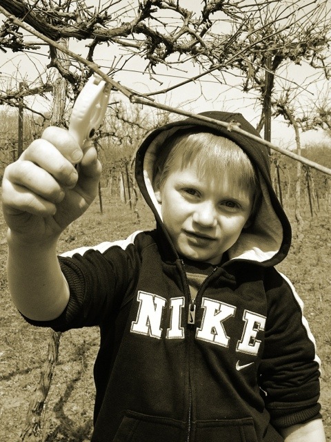 Mocking the pruning, however, he says his job one day will be working full time in the vineyard.
