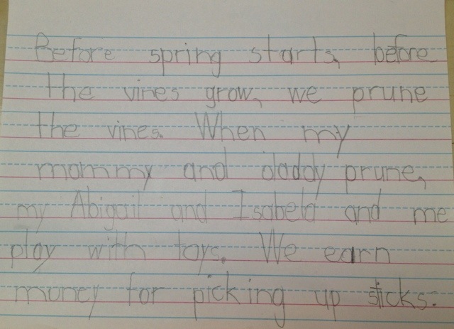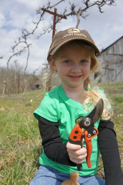Big cutters for little hands. We had the goal of writing to 100 AND finalizing our pruning before Easter. At least we made the goal of the hundreds chart. Hopefully we’ll wrap up our pruning next week. Hopefully this year we won’t lose tender growth to a late spring freeze like last year.