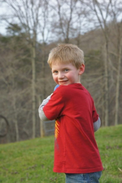 This boy playing frisbee is about to loose his first tooth! It is barely hanging by one root!