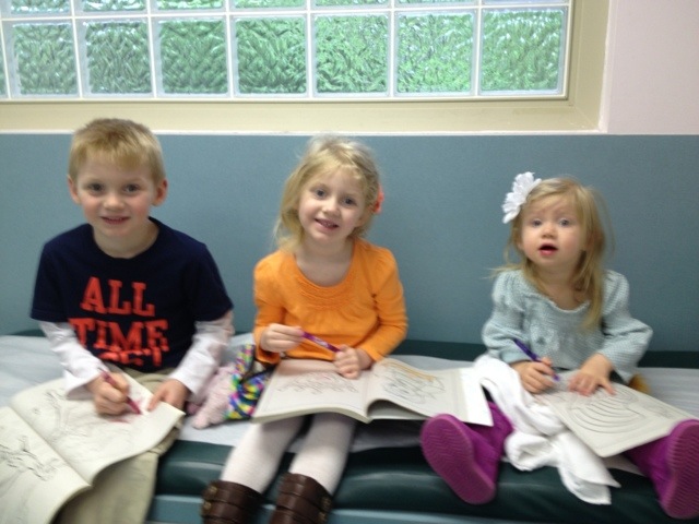 “Hall, party of three” is what the nurse announced as she calls us from the waiting room. This is our assembly line, ALL THREE waiting to see Dr. Hollingsworth for our re-check appointment. I am hopeful we are on the road to recovery.