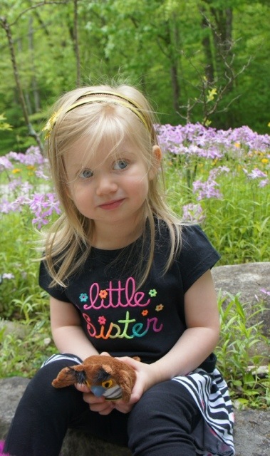This photo was taken on Mother’s Day morning, two days after returning from our overnight stay celebrating Jackson’s Birthday. Isabela is holding “Puppy” her favorite friend. Isabela’s mommy accidentally left Puppy behind in the covers of our room. We realized this when we put her down to bed and she kept begging for him. Housekeeping recovered our treasure and we of course went back up the mountain to retrieve it! She was so excited to be reunited! So sweet!