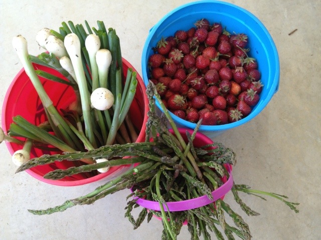 Spring rains and sun are growing our vines beautifully. We are busy suckering, removing the growth at the base of the plants. All three have proven to be very efficient at this task!