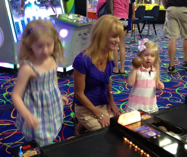Destination at the arcade trying to pick up a giraffe or a pink bear by the claw…no luck!