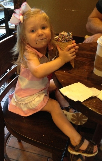 Instead of cake Isabela had a huge cone from the Marble Slab Creamery!
