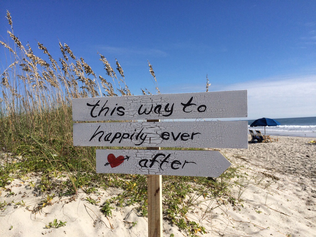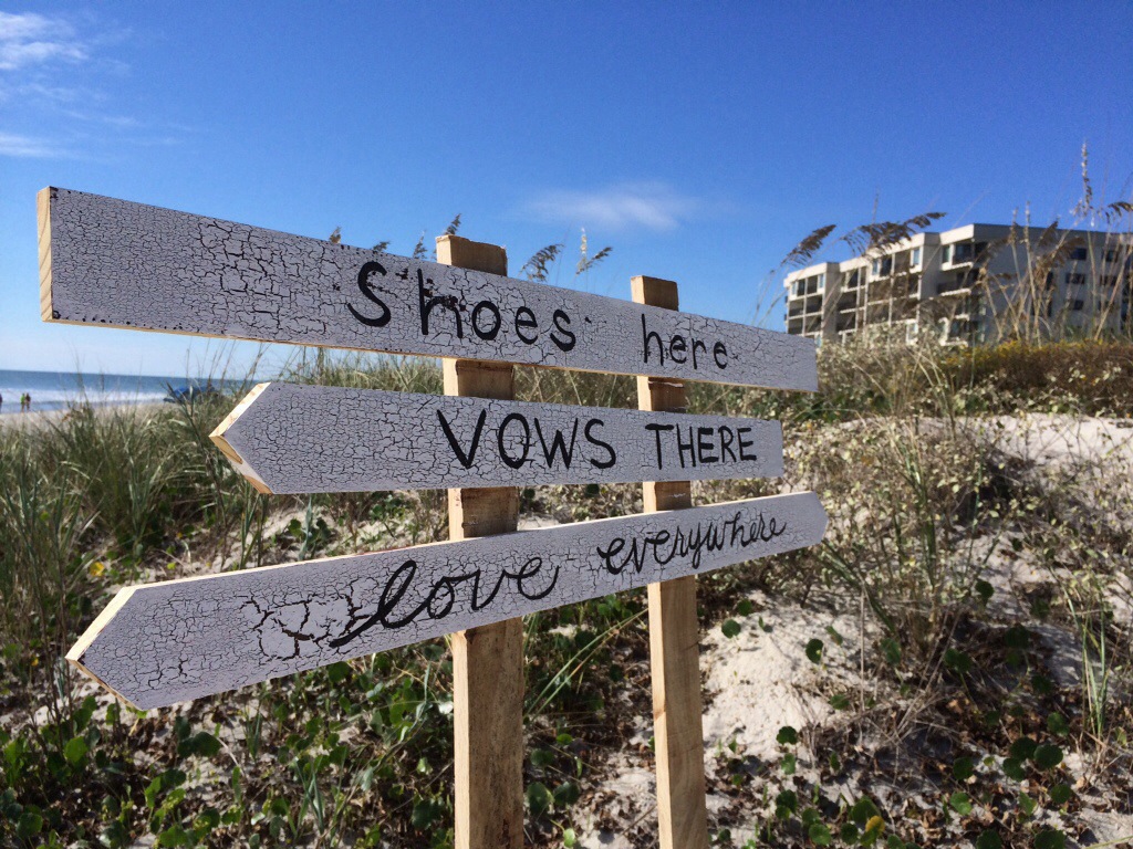 These were two of the signs on the beach for the 7:15 a.m. wedding.