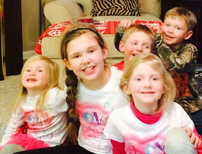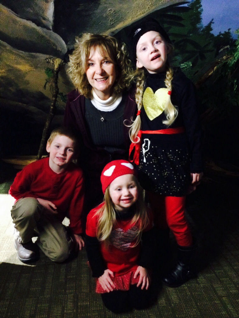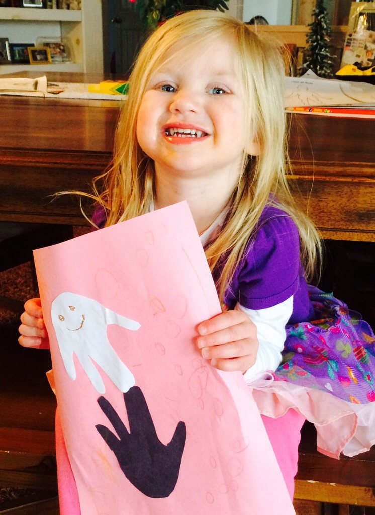 Enjoying our first candy hearts necklace from Aunt Amy and Stephanie.