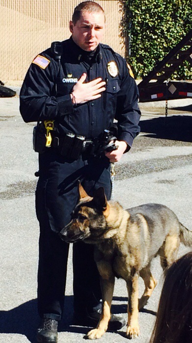 We toured the station with the other families. The highlight of the trip was meeting and petting Pasco the K-9 “cop”. We were able to watch the dog sniff out “bad things” from a vehicle, follow hand signals, and protect his partner if threatened. The children were treated with suckers and police badges!