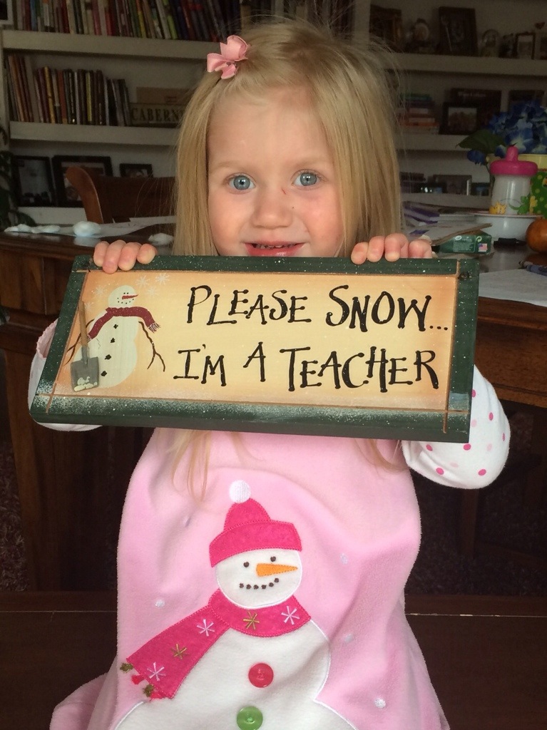 This plaque used to have an exciting meaning when I was a public classroom teacher. Now, we still love to see the snowflakes fall, but we can be selective on claiming an official “snow day” or just as good, a shortened work day in honor of the fluffy white stuff!.