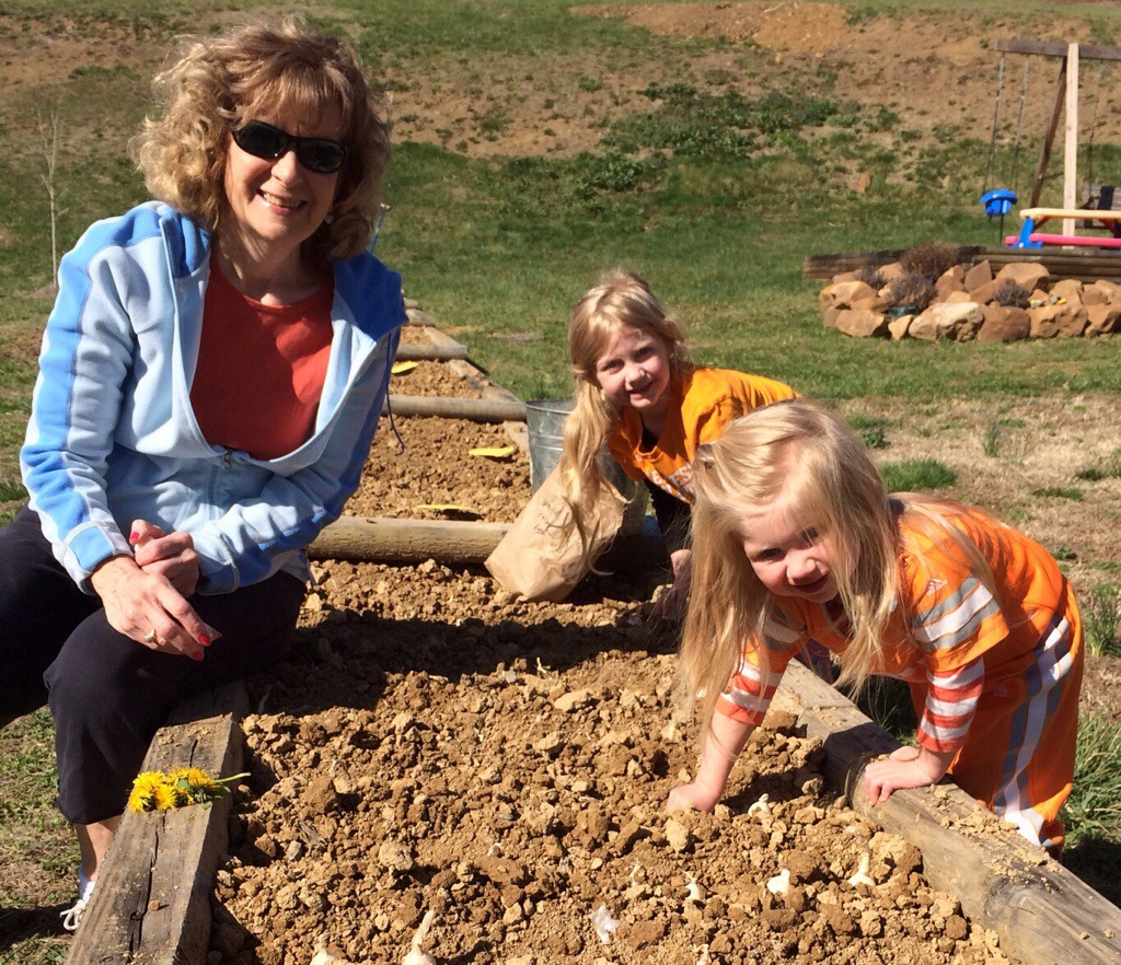 Happily we helped Papaw and Nana plant onions, lettuces, and radishes in one of our early gardens.