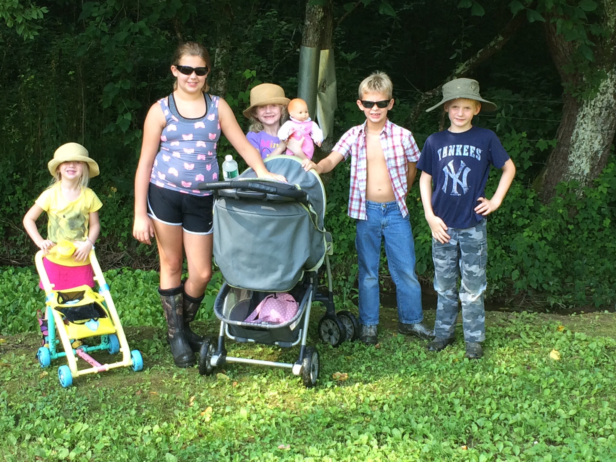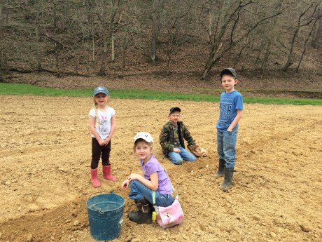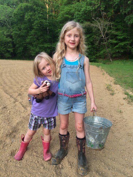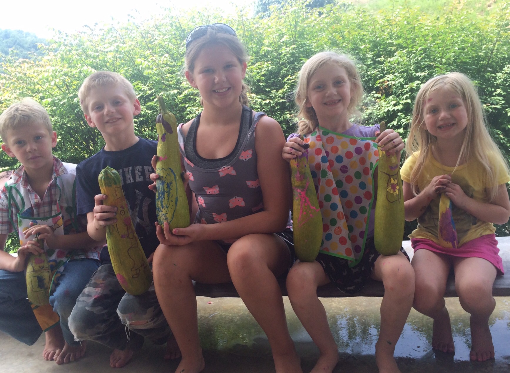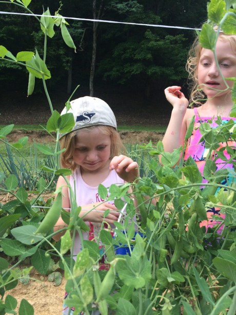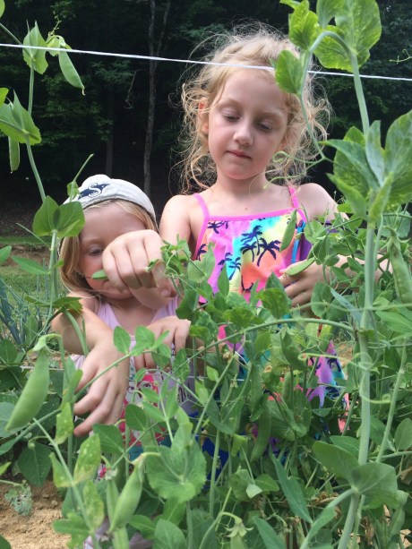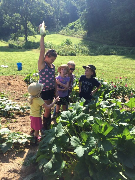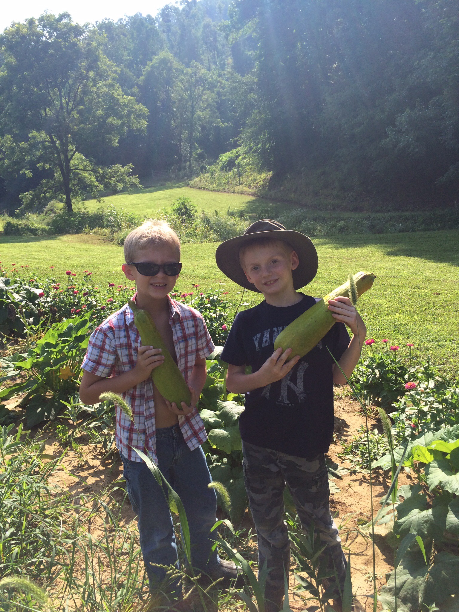 The five of them were racing in and out of every vine to see who could find the biggest and he most of the veggies. I hope the stomping of the vines will not halt their production!