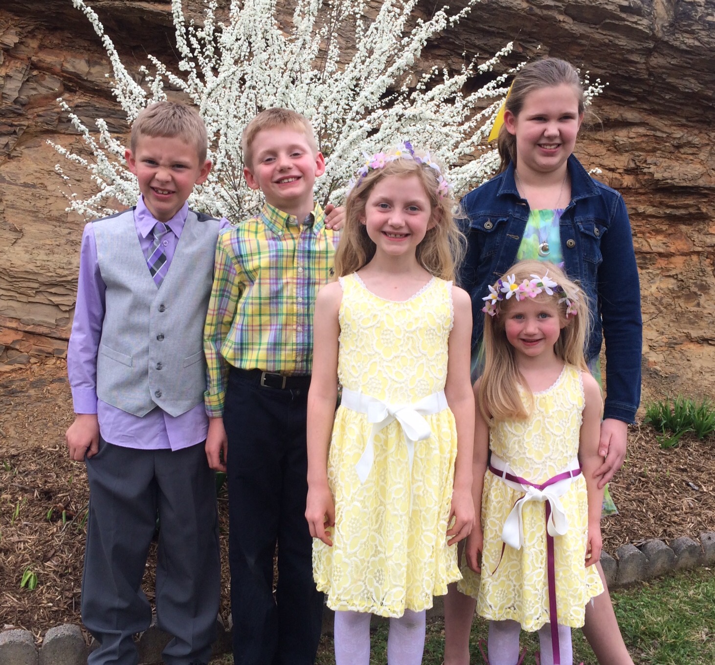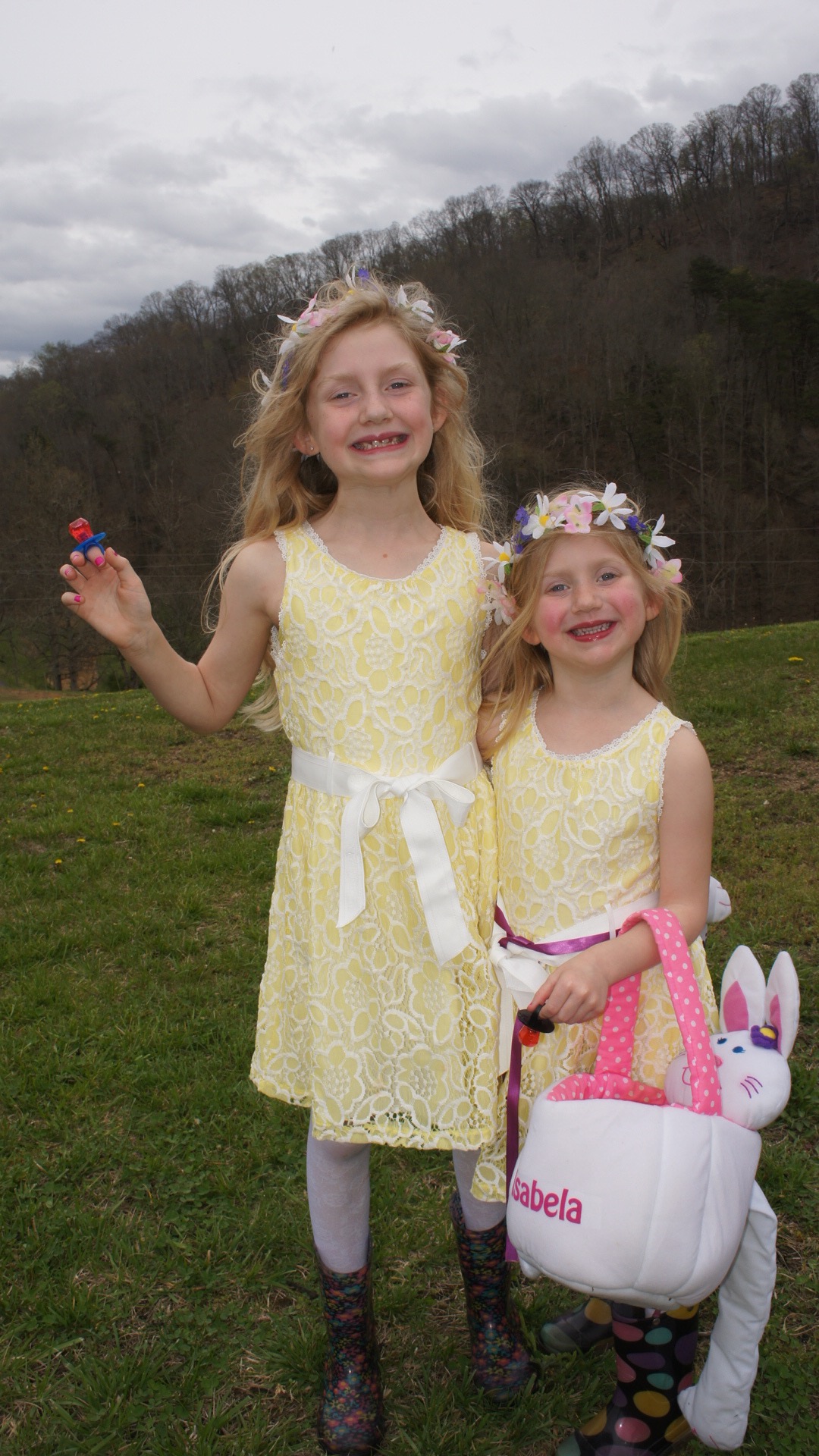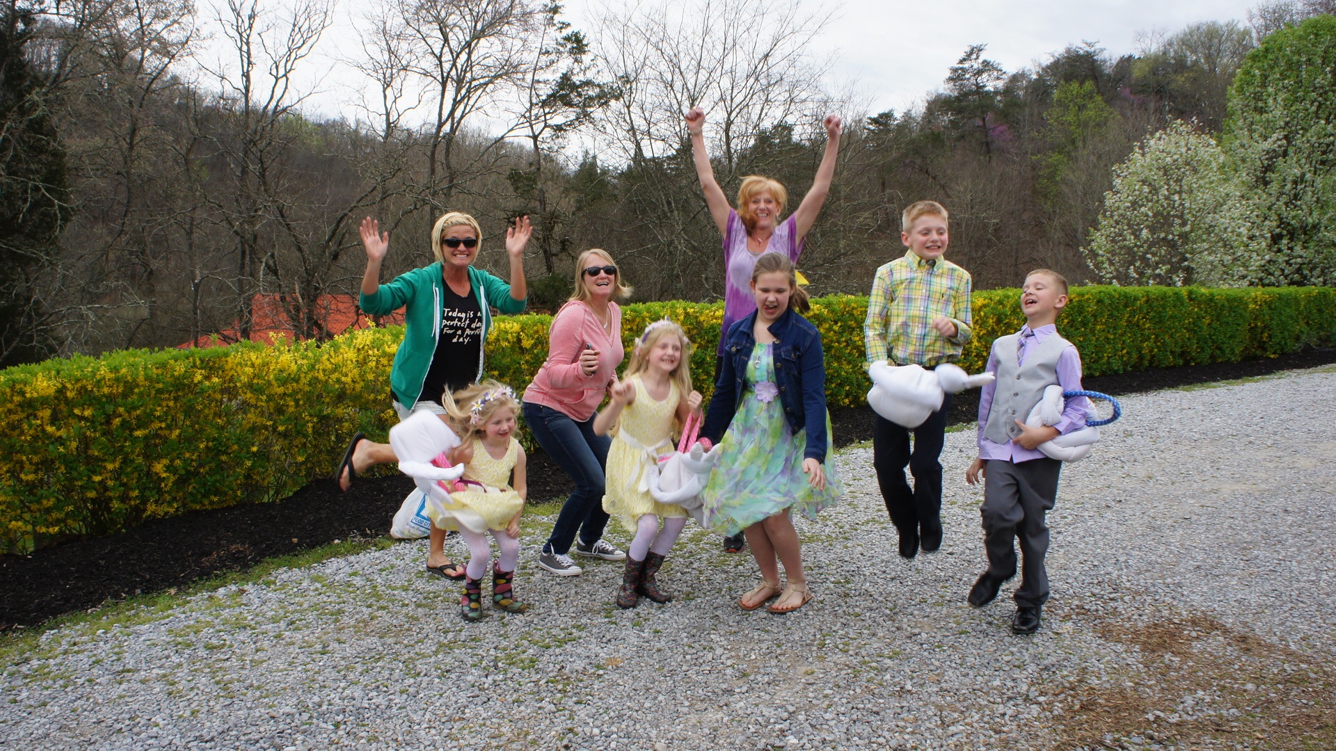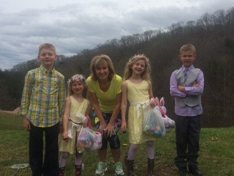 Spring Beauties that are having so much fun running in the cool air searching for the lucky egg.