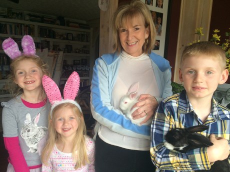 Jaydie loves the Easter bunnies too. Especially this guy, his hair is like velvet.