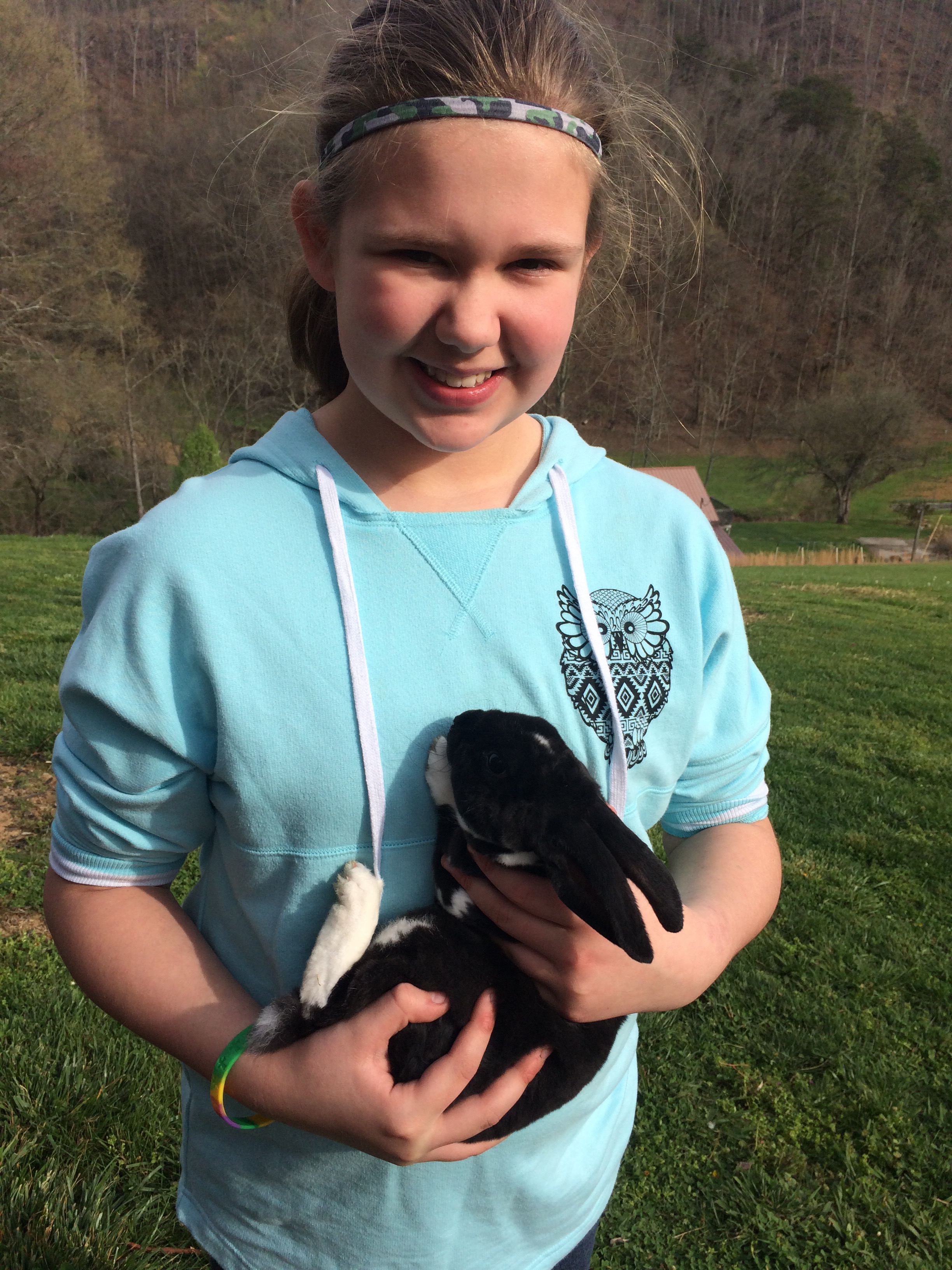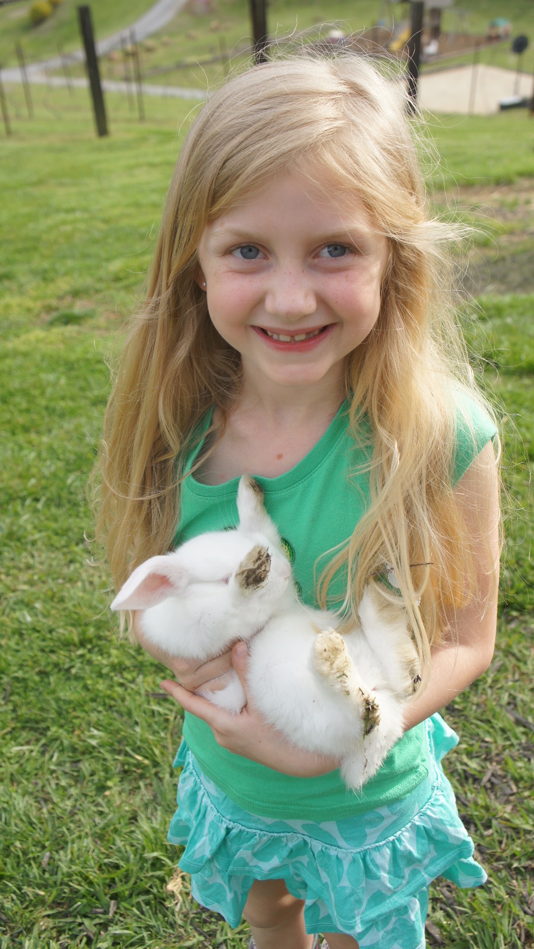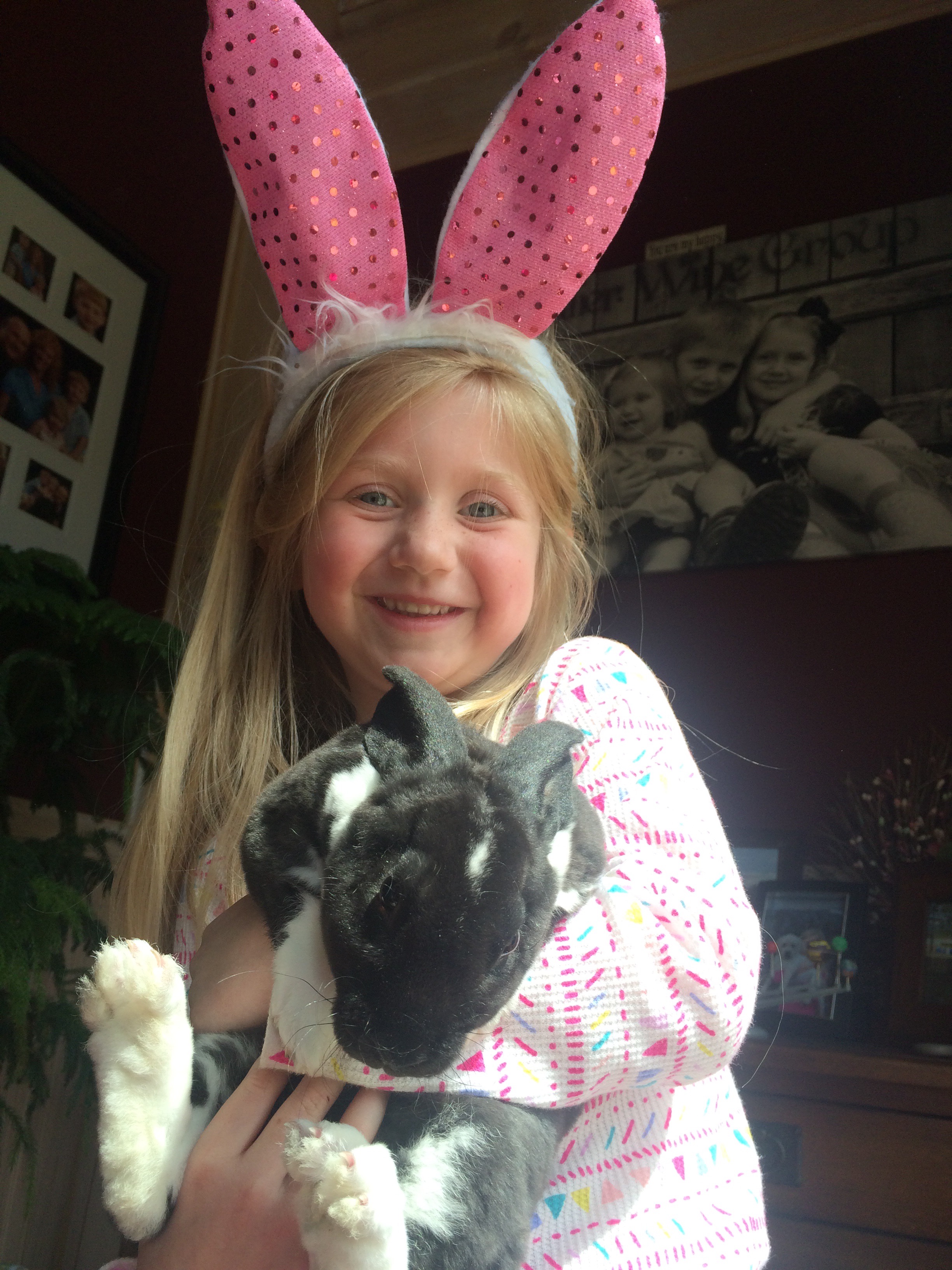 Jaydie loves the Easter bunnies too. Especially this guy, his hair is like velvet.
