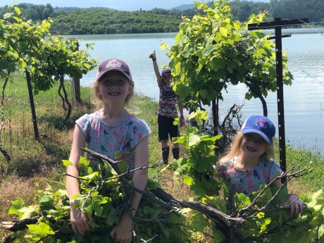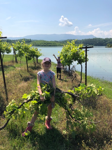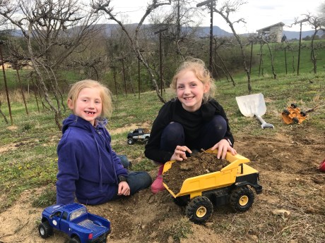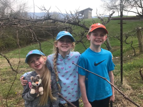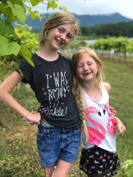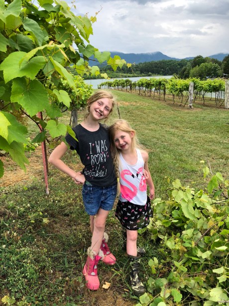 I never can believe how quick they are growing until I see them among the vines. Since they were babies they were in a stroller or playing under the vines while we worked.