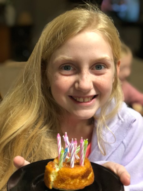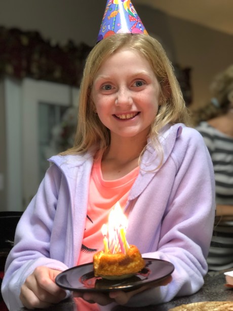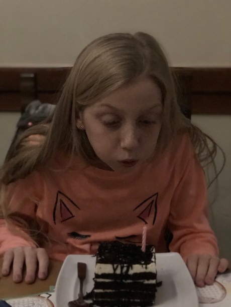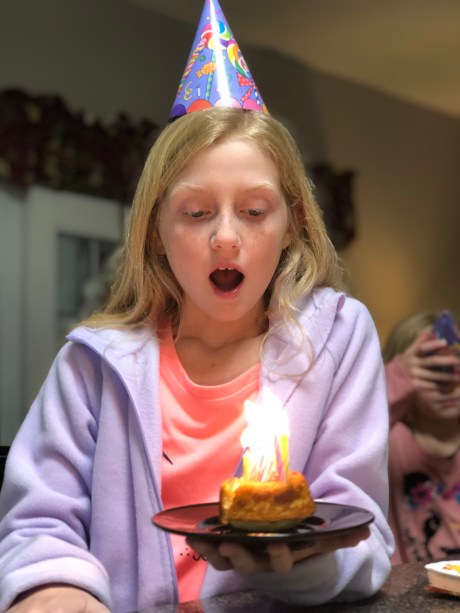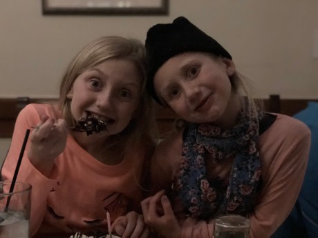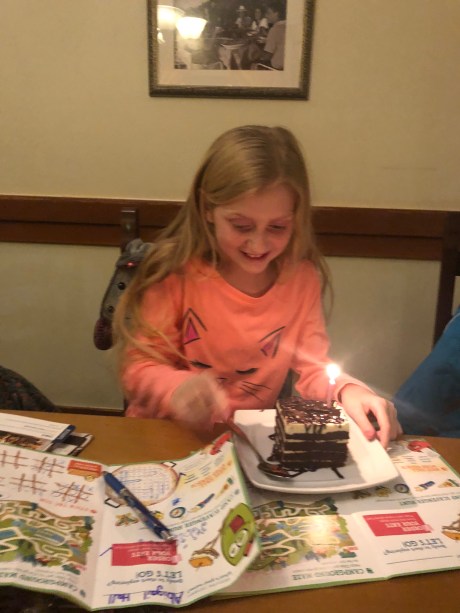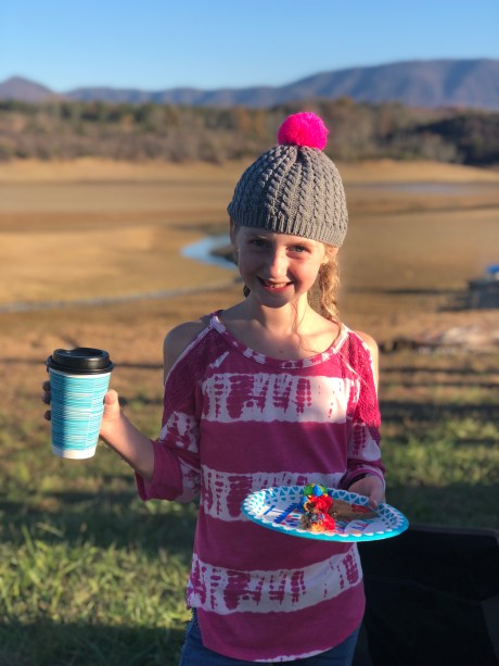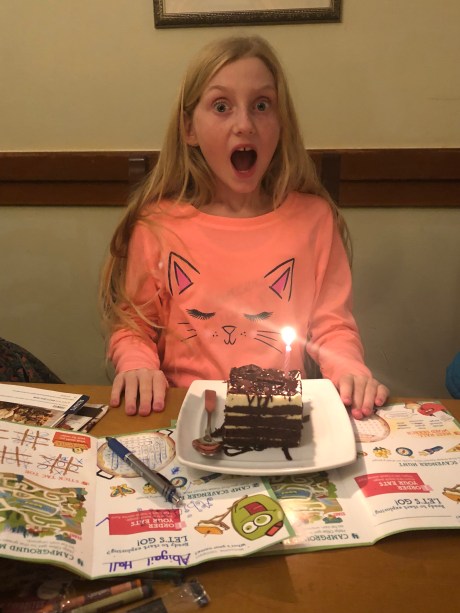 we surprised both girls with a hit chocolate and cookie cake celebration for the cool November day at the lake