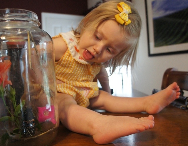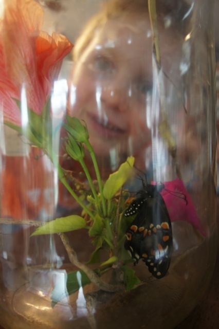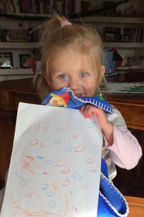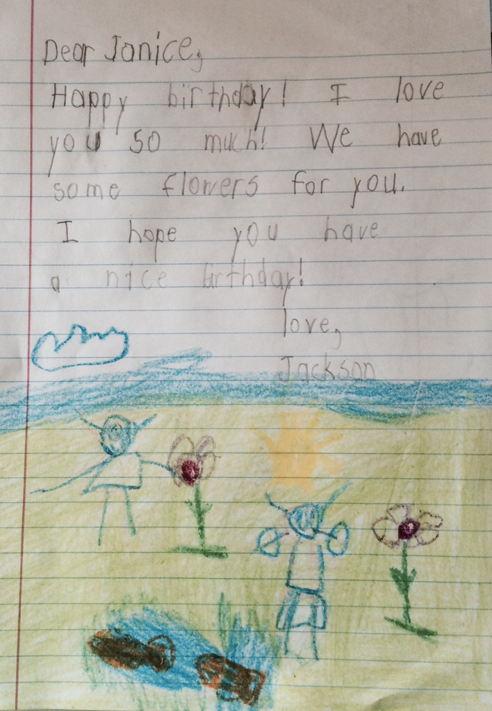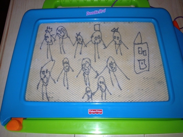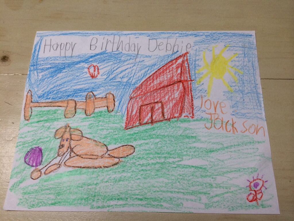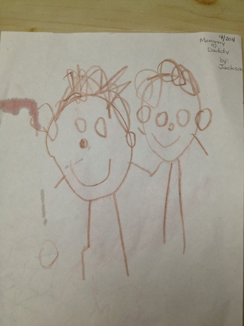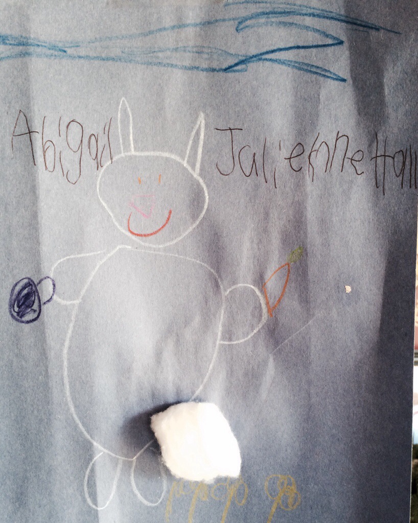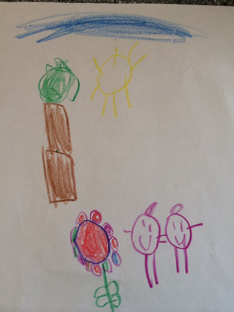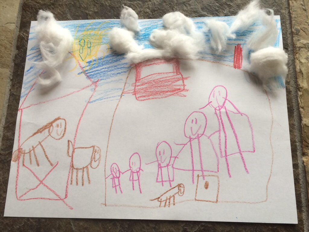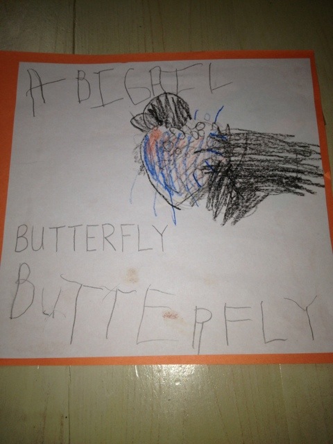By Abigail, she described this as a birthday cake for Jackson. She said she had a hard time getting the seven crayons to all stand as candles.