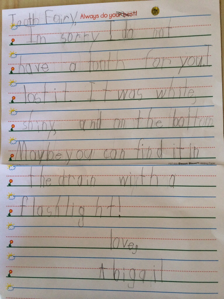 She was satisfied because the fairy left her a note saying she liked the tooth drawing that was left in place of the real tooth.