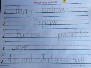 Over the past week Abigail had started ABC order as well as trying to put together a sentence with five words.
