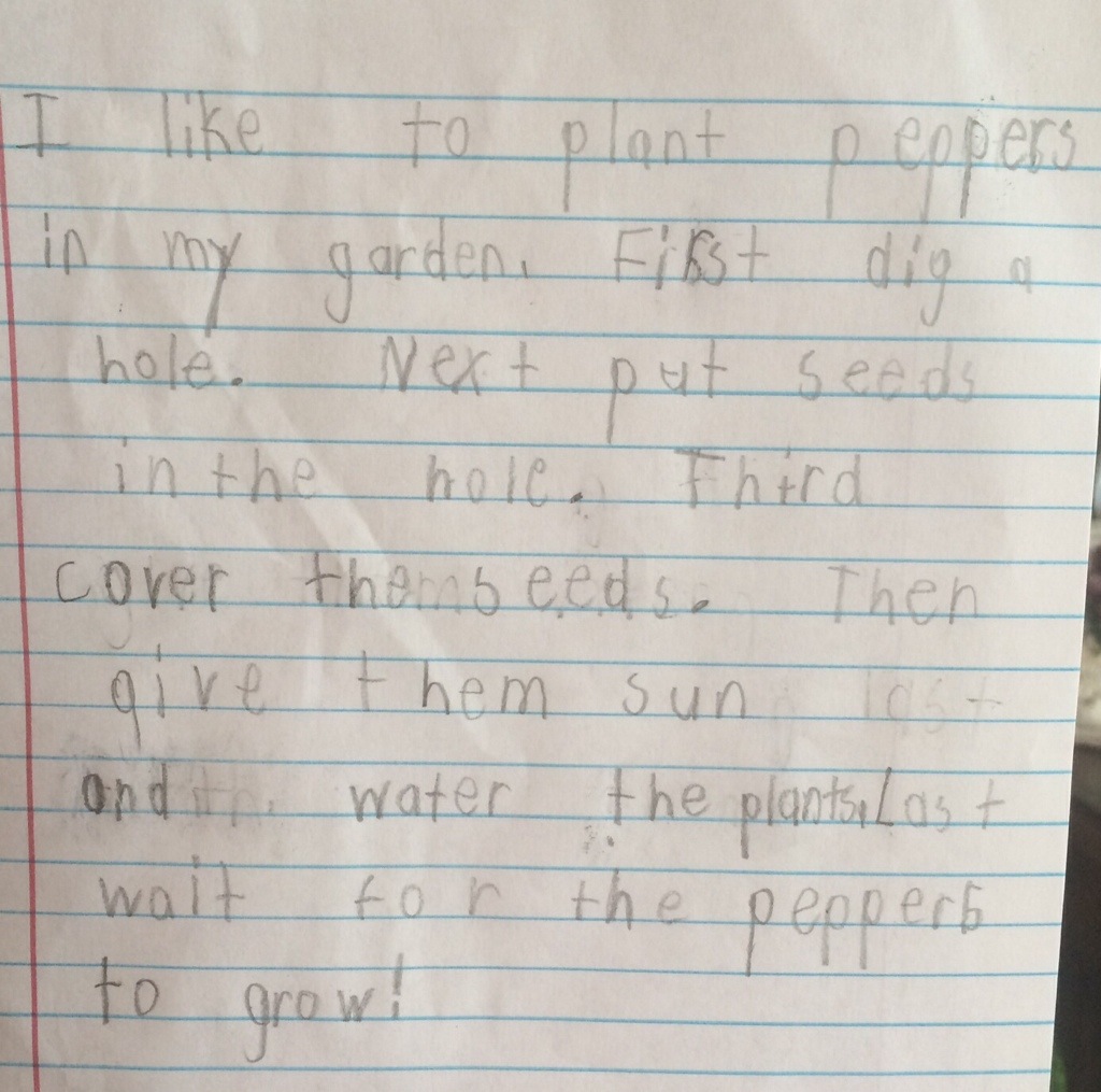 Jackson chose to describe the steps of planting peppers for a Language assignment.
