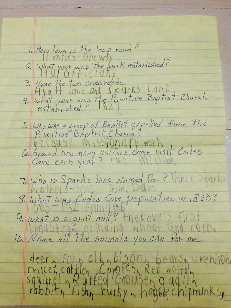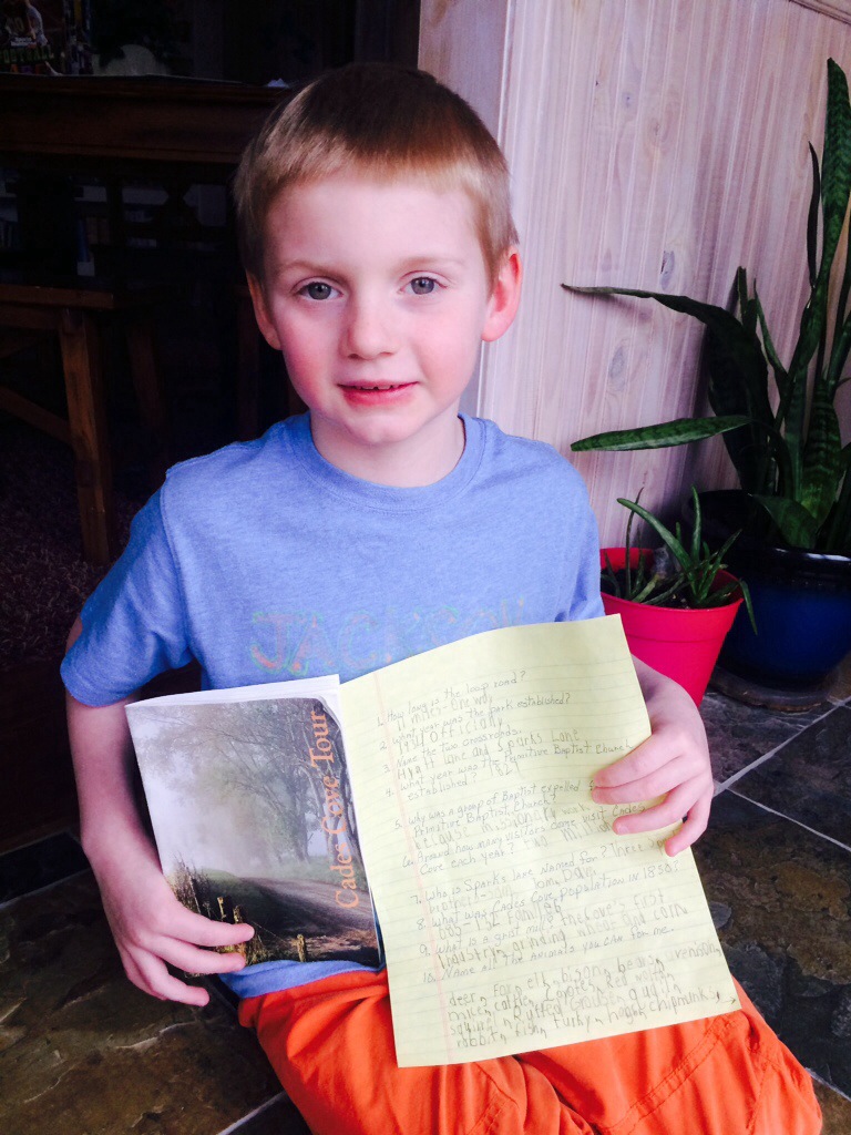 We brought Papaw one of the Cades Cove Tour booklets to read and guess what…he made the quiz for Jackson.