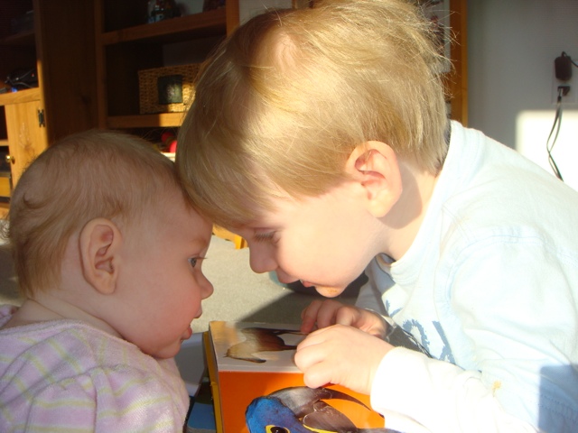 The pictures below are early days of falling in love with books. I LOVE the one of Jackson reading to Abigail in March of 2009.