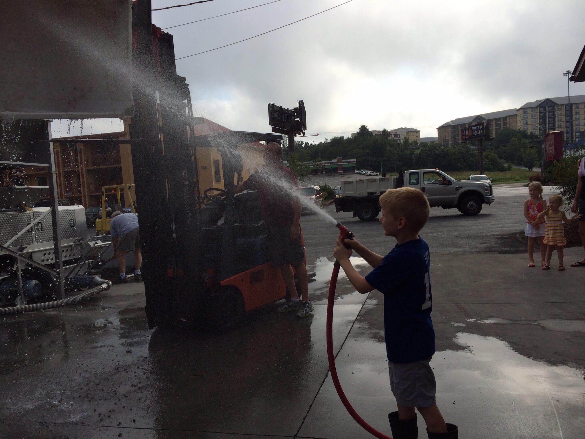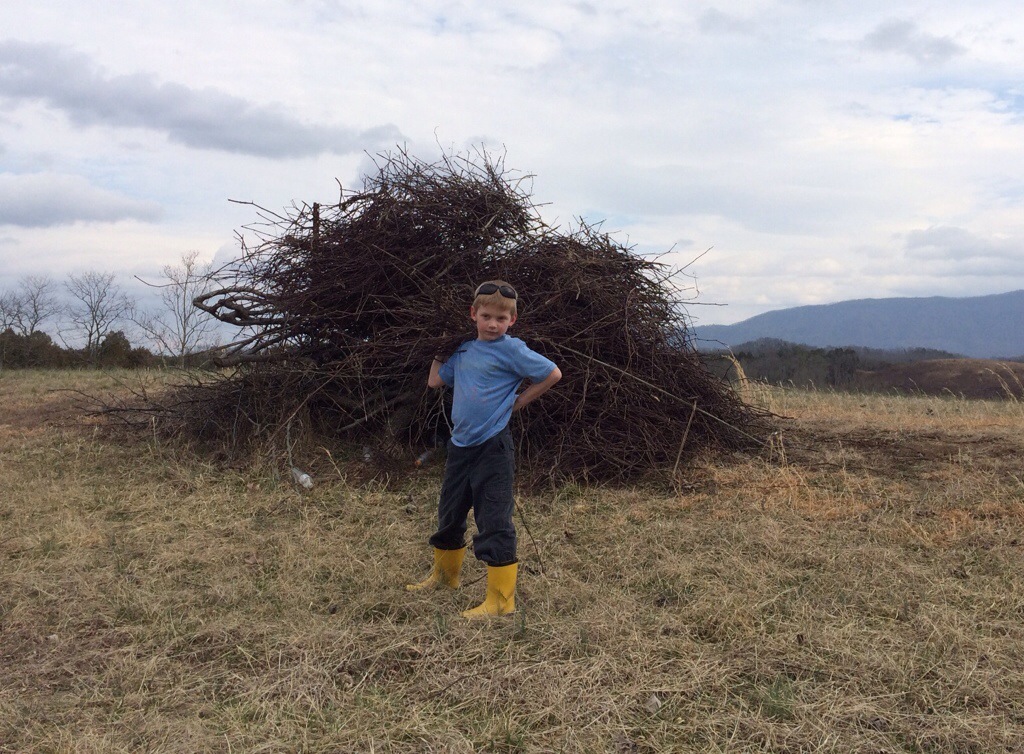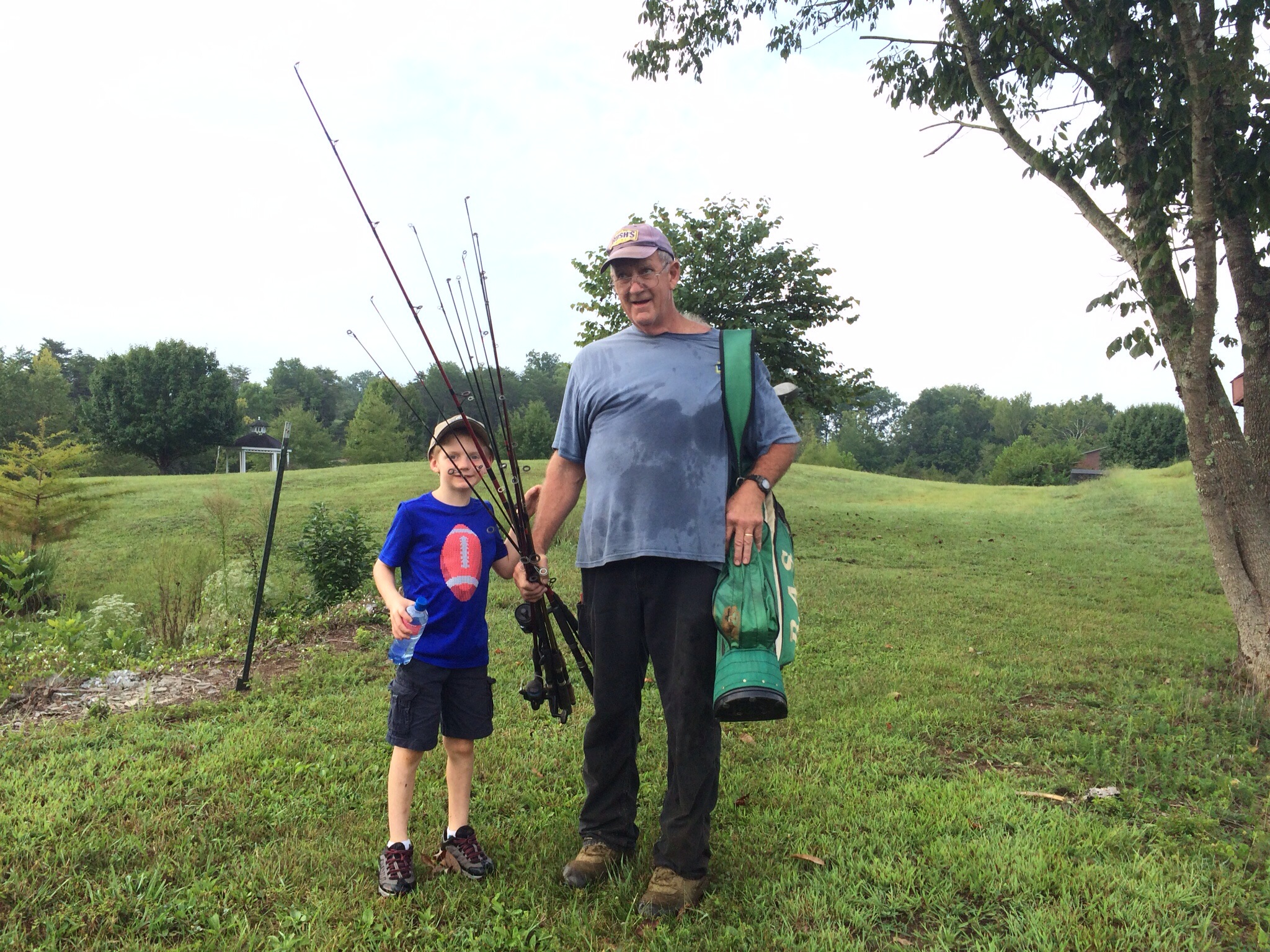 Papaw really does enjoy carrying all of those buckets, especially with Jackson helping.