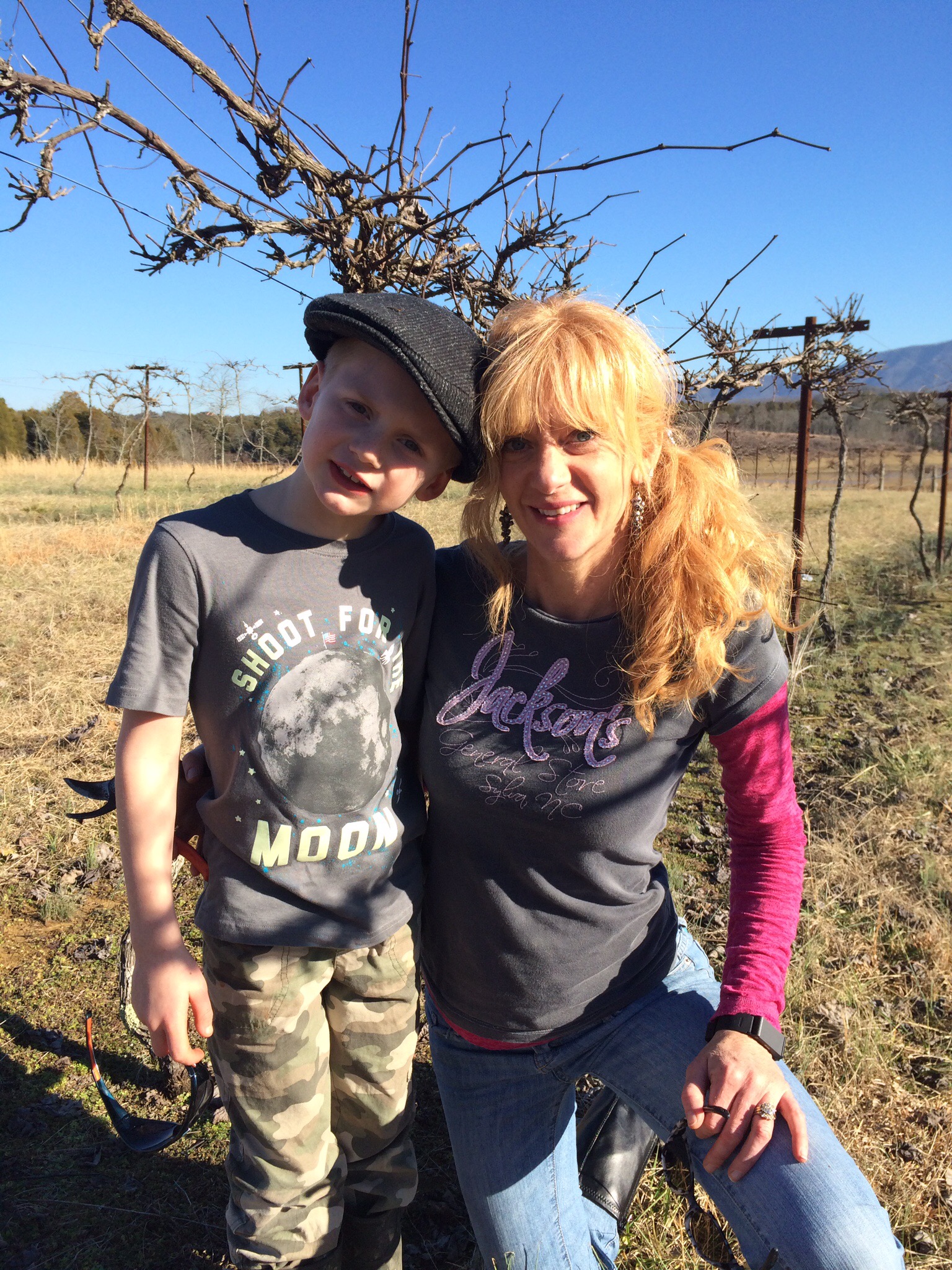 Jackson with one of our favorite blessings…Janice…our vineyard neighbor.